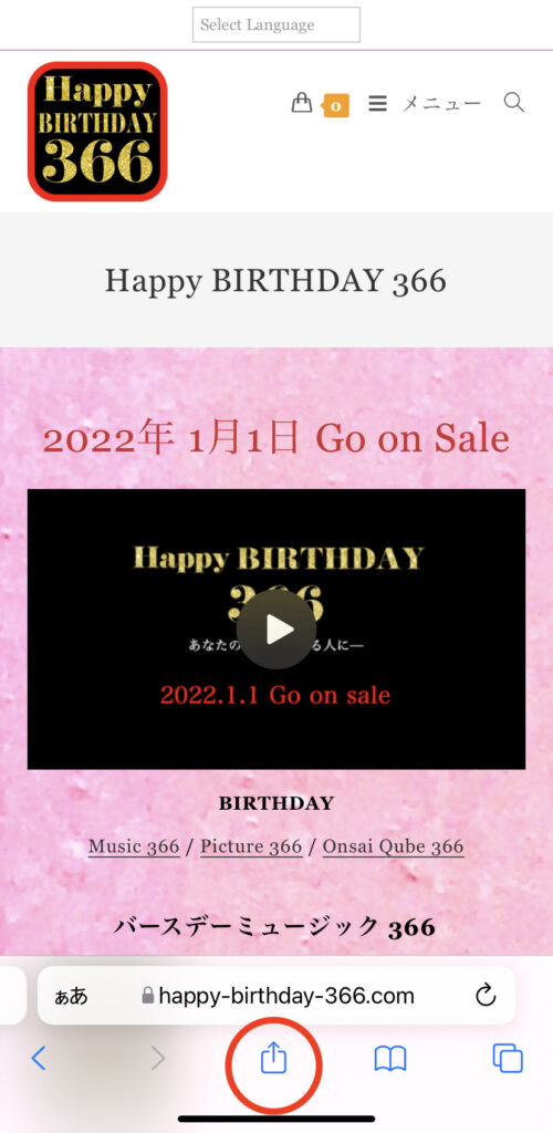 - Safari ブラウザにて、URL: https://happy-birthday-366.com/ にアクセス。